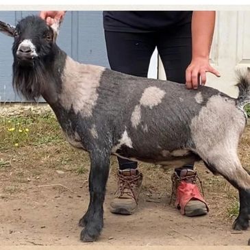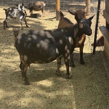Fancy Free has a great pedigree, her sire is Old Mountain Farm Blue Steel she has many other notables in her pedigree as well, she sells with her female doeling until weaned