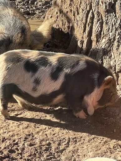 Note! Kunekune pigs are not mini pigs. Recently Social Media has made KuneKunes a fad and now made people believe they are miniature pigs. They are mini compared to Berkshire, however we have 400 pounds KuneKunes, they are not mini's and are not house pets these guys need pasture, room to run and wallows to be a pig.