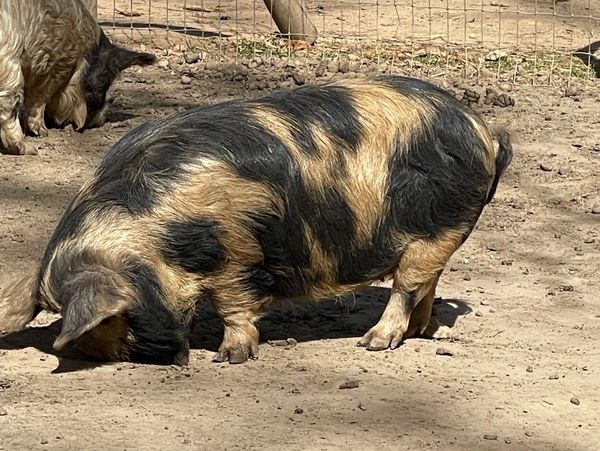 These docile pigs are known for their silly personalities, docile dispositions, adorable looks, and the offer a dark red tasty pork meat for homesteaders and such!